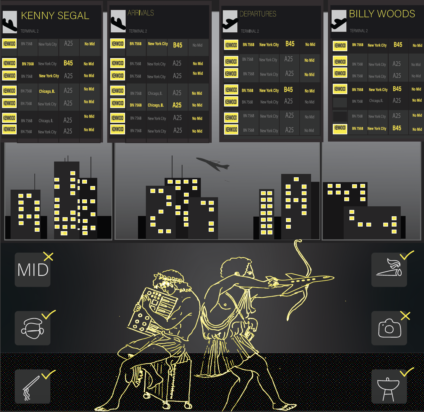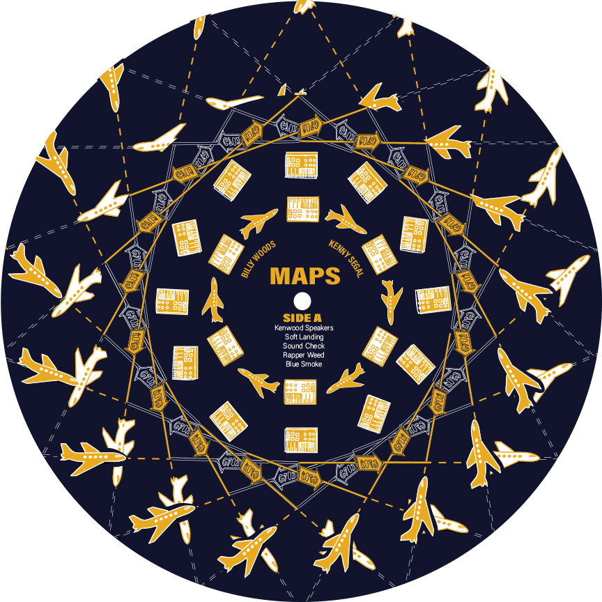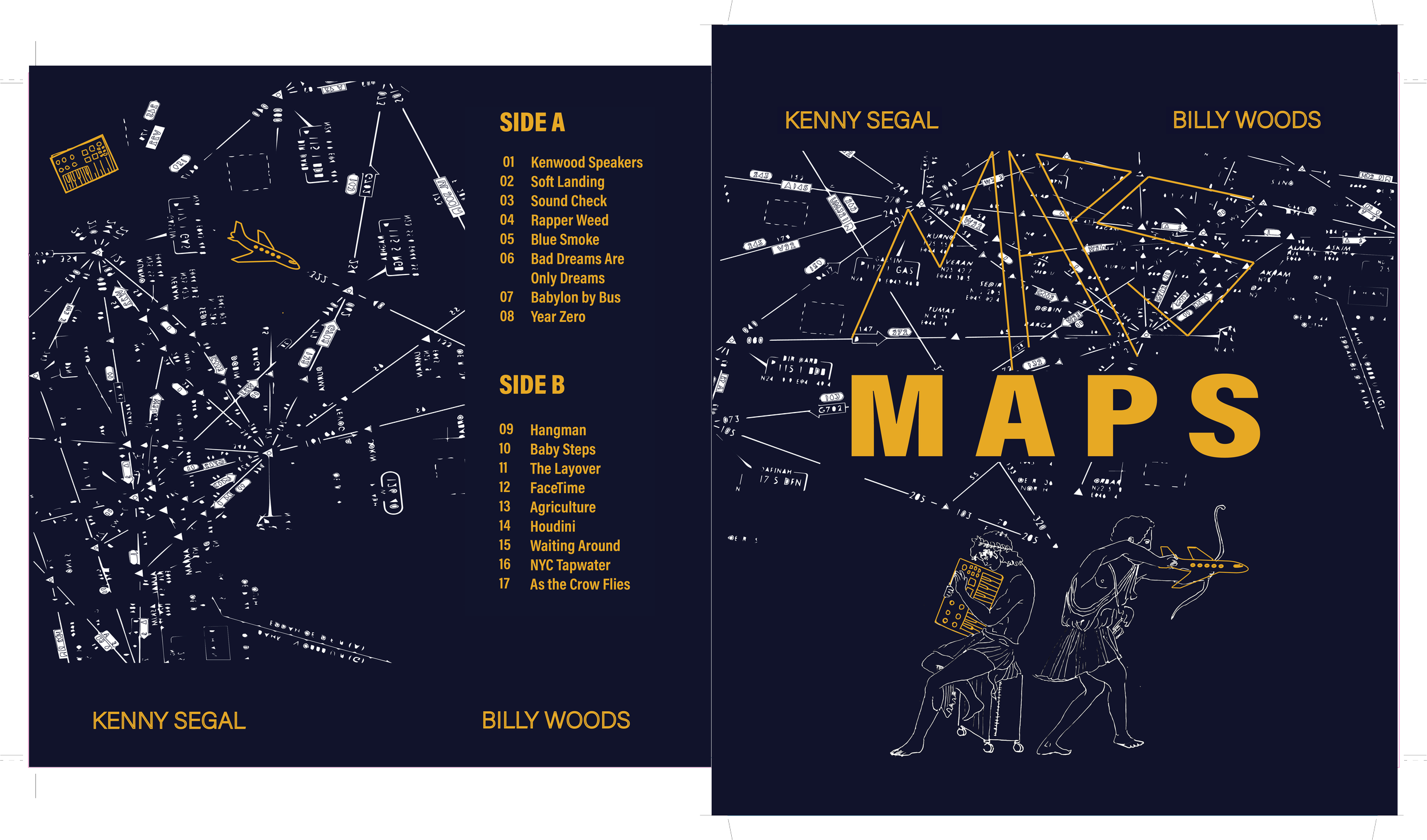 MAPS is a sonically dark and esoteric concept album is loosely focused on travel. “Travel” within this album refers to every meaning of the word from plane rides to time travel to out of body experiences. Billy woods speaks in metaphors, likening himself and his surrounding to historic figures and events, framing his modern life experience. In the design, I likened both artists to specific mythological figures (Billy as Odysseus, Kenny as Orpheus), and placed them amidst a modern aesthetic to reflect their roles in the process of the album. The choice of blue and white pushes forth astrological themes with orange to contrast and emphasize important information. A more abstract interpretation of the word “maps” is created in the paths of the map itself, which is shown in orange.