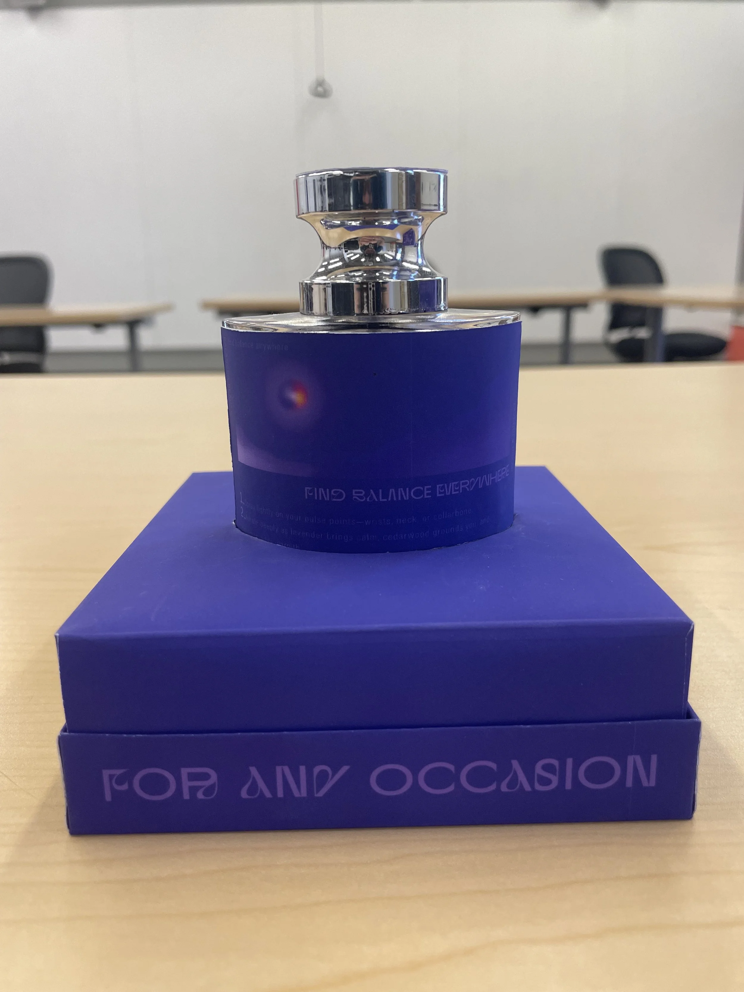 In my package design class, I was tasked with creating a zodiac-themed perfume package. I developed "Balanced Beauty," a luxury perfume brand inspired by the Libra zodiac sign. The brand embodies femininity, refinement, and intellect, with a design aimed at evoking a transition into a dimension of confidence, passion, and comfort. The packaging strikes a balance between luxury and approachability, while also visually represents the fragrance’s notes of lavender, cedarwood, and cinnamon, combining their calming, grounding, and invigorating qualities into the design.The logo combines the two mirrored “B”s of Balanced Beauty with the iconic Libra zodiac symbol, seamlessly merging brand identity with astrological inspiration.