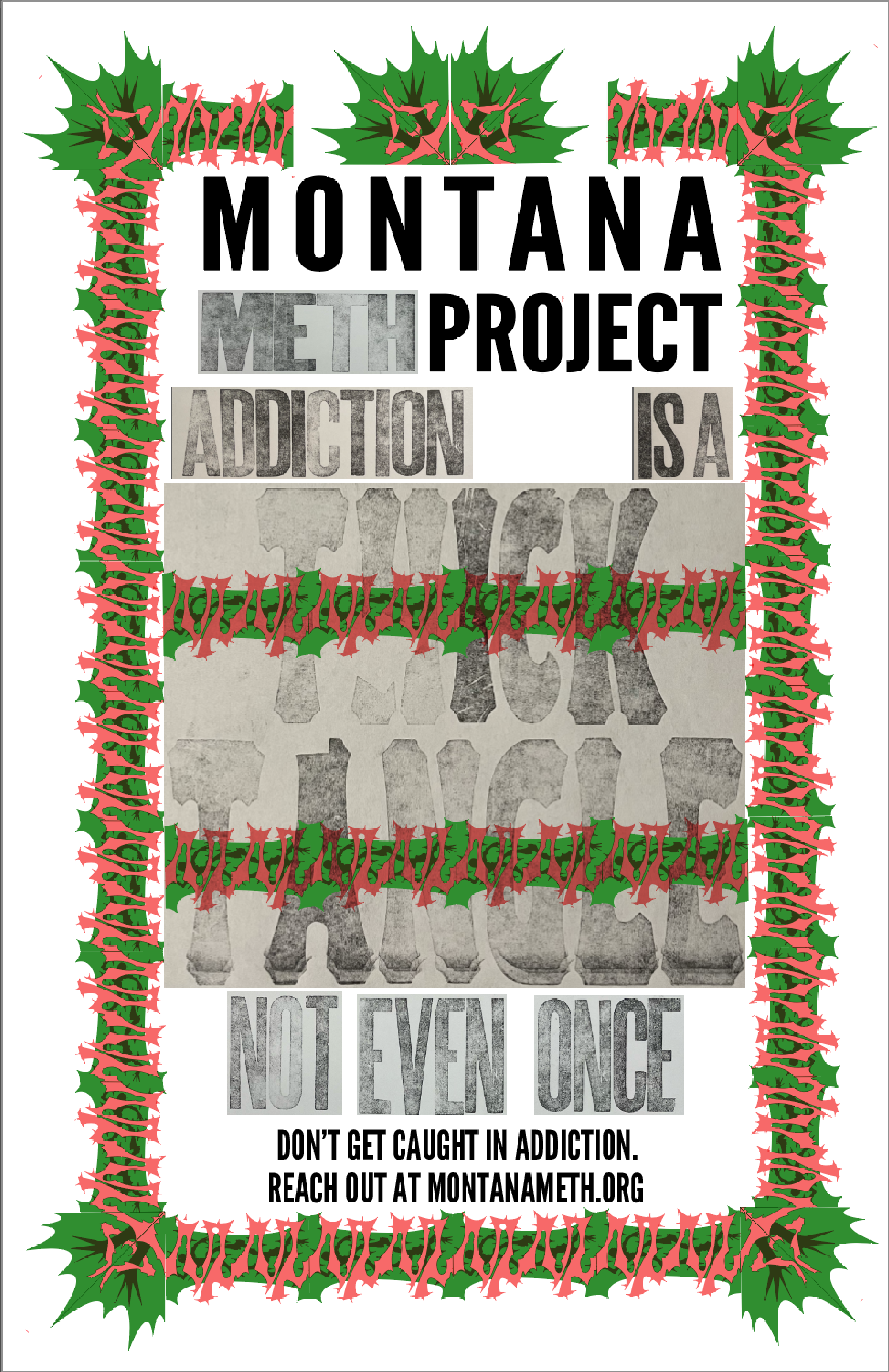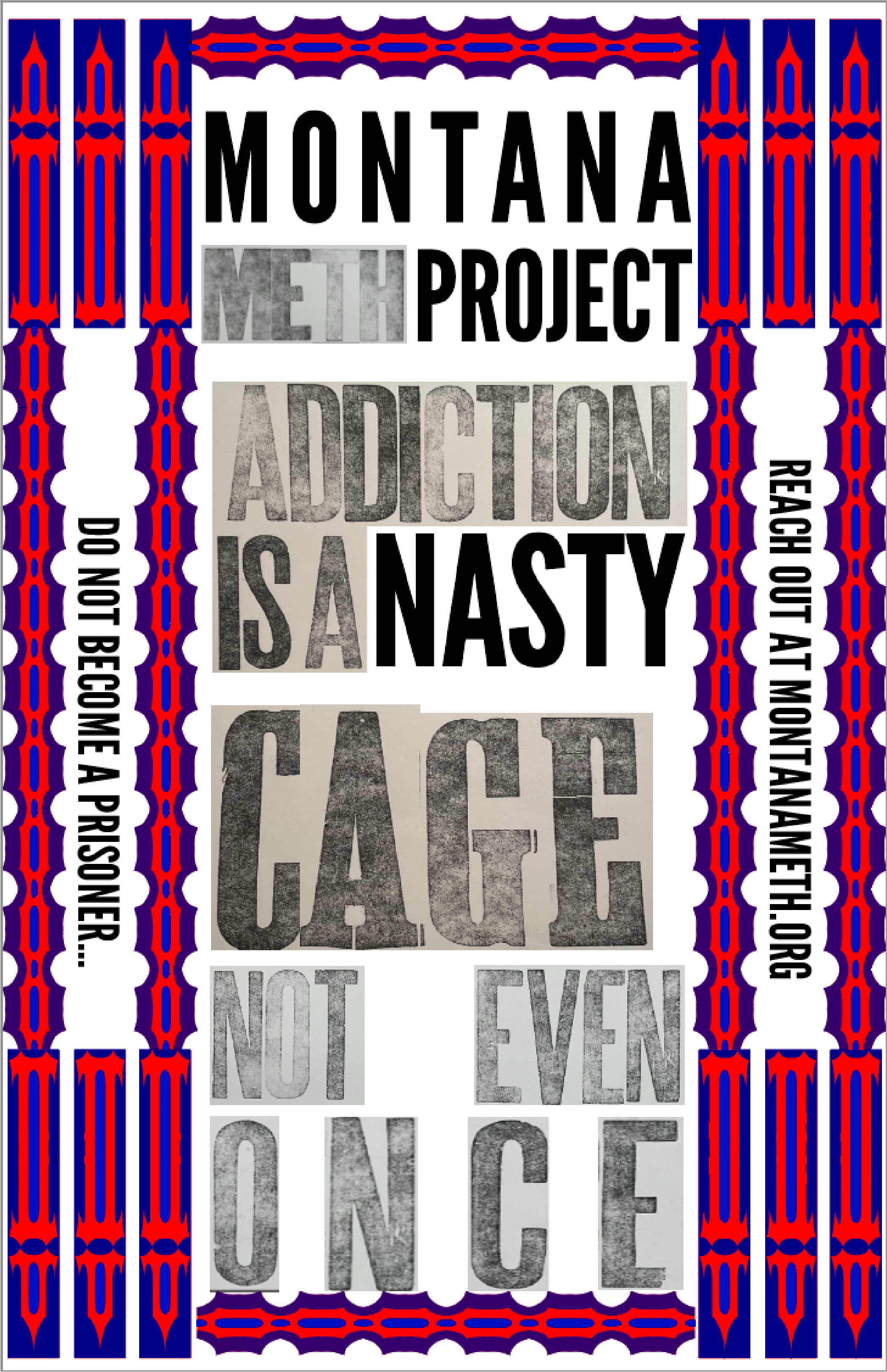 Due to the typography’s bold and aggressive forms, I was inspired to design for a cause such as MADD or the Montana Meth Project. I saw a strong connection between the visual intensity of the typeface and the bold, urgent messaging required by both of these campaigns.